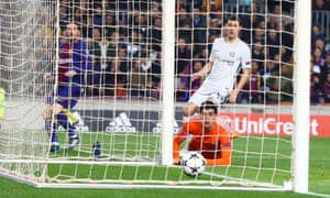 Messi’s ninth and 10th appearances against the team from Stamford Bridge have buried that one now Barcelona have safely navigated a route into the quarter-finals and Chelsea are left to consider that no side at this level can expect to get away with defending this generously. Messi contributed three‑quarters of Barcelona’s goals over the two legs. He is a genius, as everyone knows, but Chelsea played an obliging role when the mistakes of Thibaut Courtois and assorted colleagues are totted up.