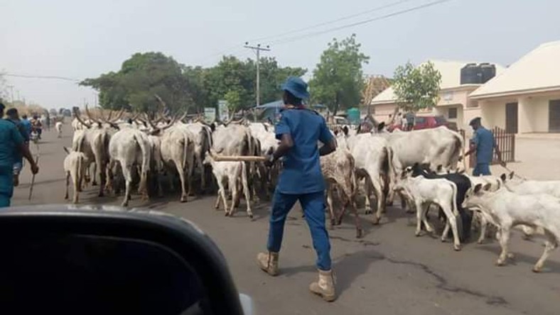 The Benue State Livestock Guards has impounded 105 cows and four sheep caught grazing openly near Akawe Torkula College of Advanced and Professional Studies, Makurdi.