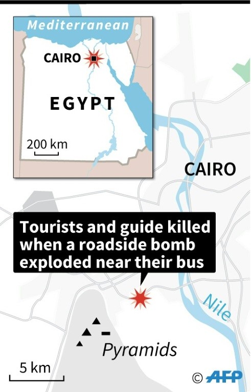 Early on Friday evening, a roadside bomb hit a tour bus in the Al-Haram district near the Giza pyramids, killing the three Vietnamese holidaymakers and their Egyptian guide, officials said.
