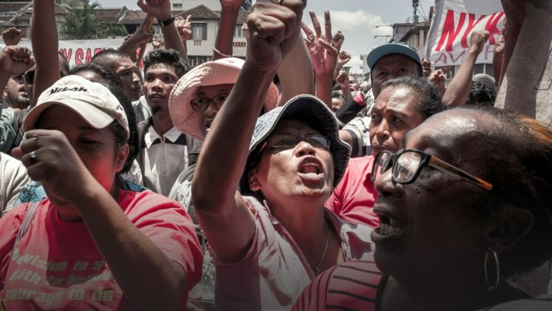 3/3 Supporters of defeated presidential candidate Marc Ravalomanana protest against Andry Rajoelina's victory in the election