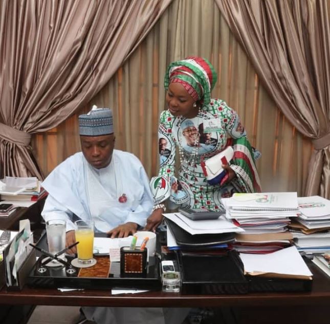 Saraki seemed distracted with many files as his wife stayed around.